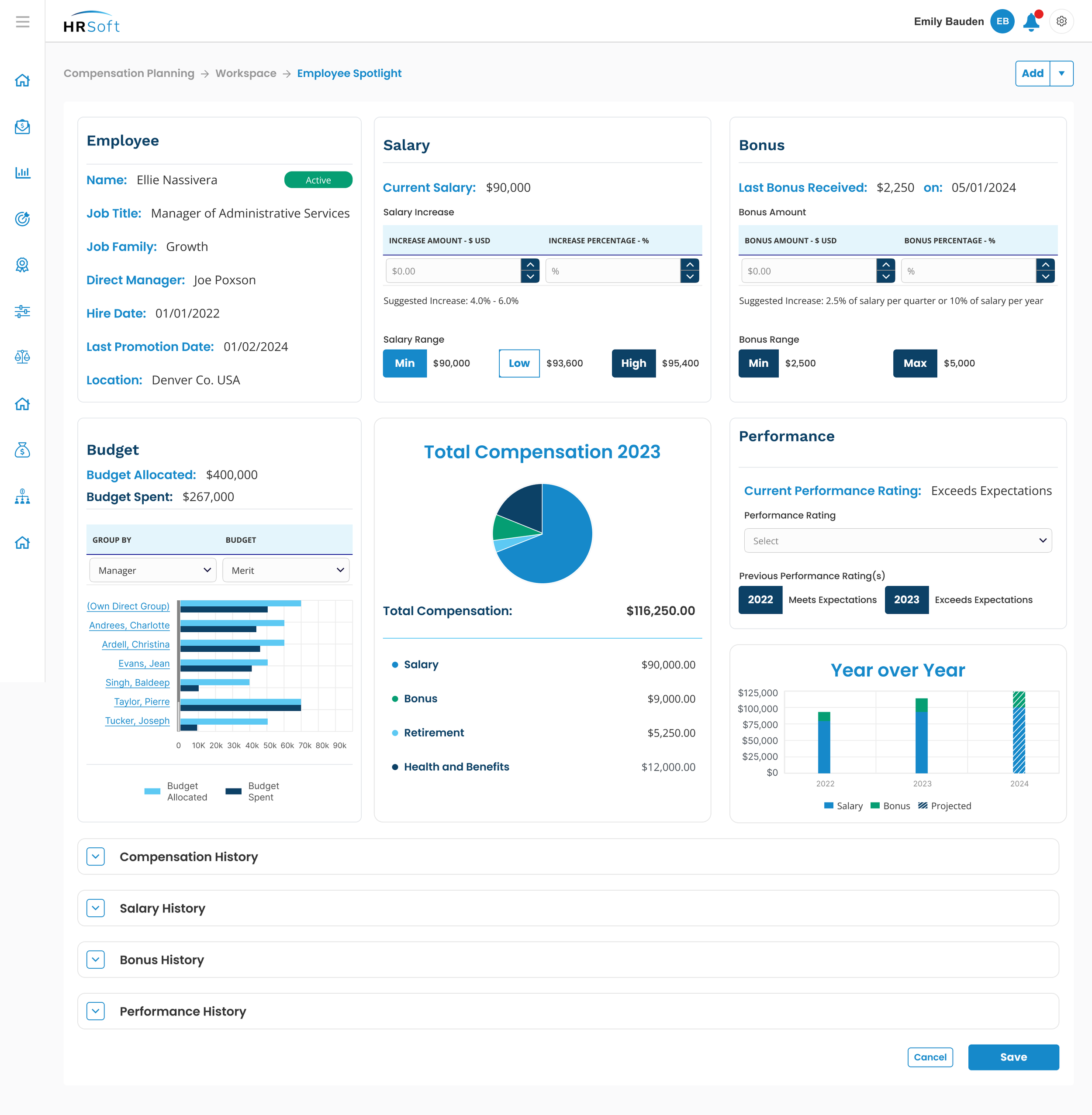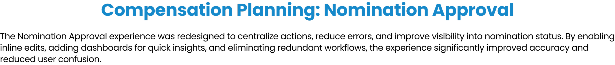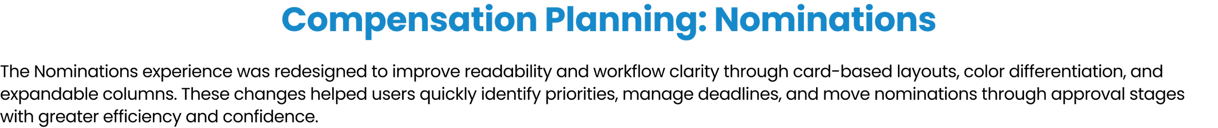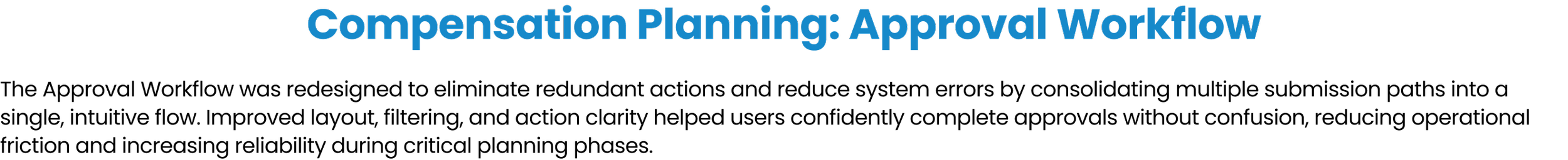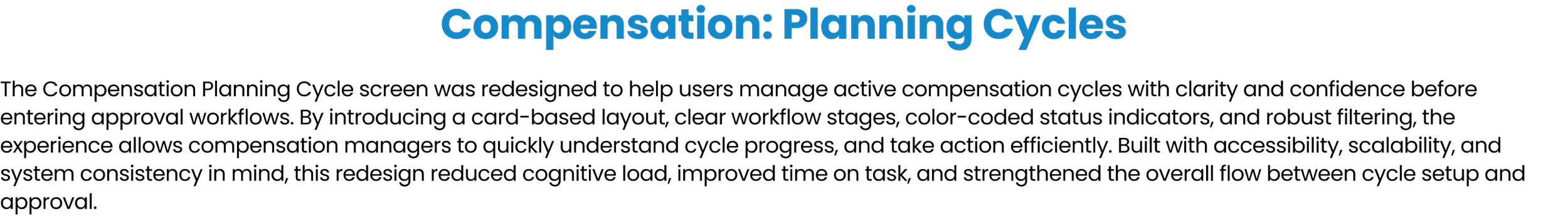 I designed intuitive workflows, responsive tables, and clear data visualizations that turned dense, high-stakes information into actionable insights. The goal: empower HR and people managers to plan fairly, move fast, and stay in sync—at every step of the compensation cycle.